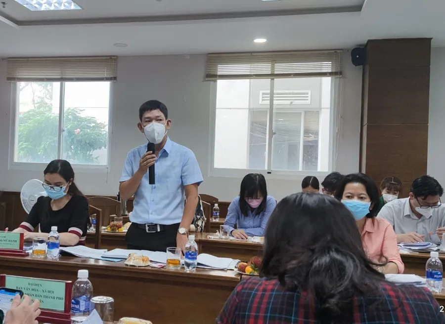 Ông Nguyễn Hoàng Xuân Vinh, Trưởng Phòng LĐ-TB&XH quận 4 phát biểu trong buổi giám sát. Ảnh: NGUYỄN HIỀN
