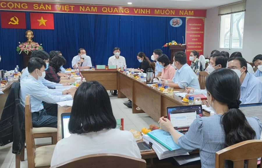 Đoàn kiểm tra, giám sát tại quận 4. Ảnh: NGUYỄN HIỀN