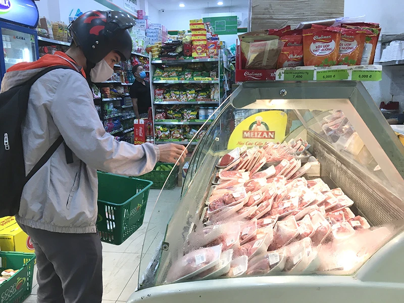Theo khảo sát của chúng tôi, một vài hệ thống siêu thị mới đây đã giảm giá các mặt hàng thịt heo 15%-25%. Tuy nhiên, giá thịt heo bán lẻ tại phần lớn các siêu thị đều giữ ở mức khá cao. Đơn cử như thịt đùi vẫn ở mức trên 160.000 đồng/kg, thịt ba rọi 179.000 đồng/kg, sườn non gần 240.000 đồng/kg. Thậm chí loại thịt ngon lên tới gần 300.000 đồng/kg. Tương tự, tại nhiều chợ, giá thịt heo cũng giữ ở mức cao, dao động trung bình trong khoảng 150.000-200.000 đồng/kg.