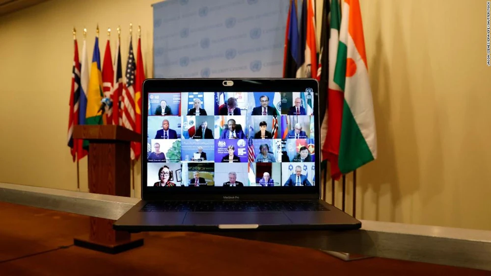 Hội đồng Bảo an Liên Hợp Quốc họp trực tuyến bàn về cuộc xung đột Israel - Hamas. Ảnh: CNN