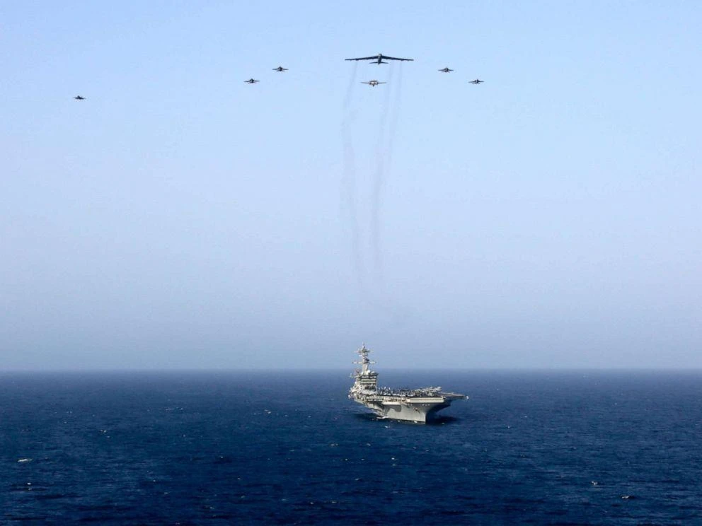 Tàu sân bay USS Abraham Lincoln cùng với khoảng 40 máy bay chiến đấu trên tàu đã có ít nhất hai cuộc tập trận trên biển Ả Rập cùng với nhiều tàu chiến khác, và cả với các máy bay ném bom B-52 mà Mỹ đưa tới căn cứ không quân Al Udeid ở Qatar tháng trước để đối phó Iran.