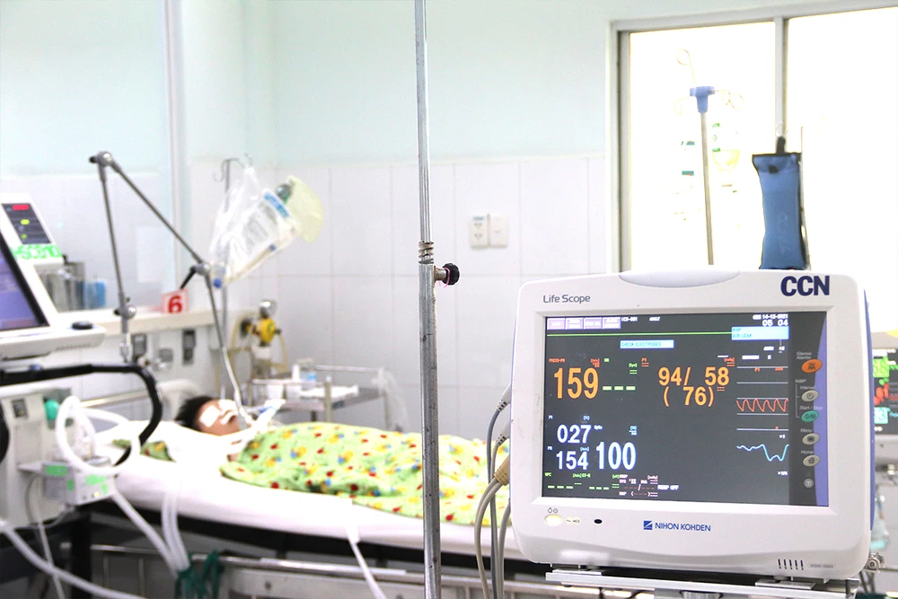 Bệnh nhi mắc COVID-19 nặng điều trị tại BV Nhi đồng 2. Ảnh: HL