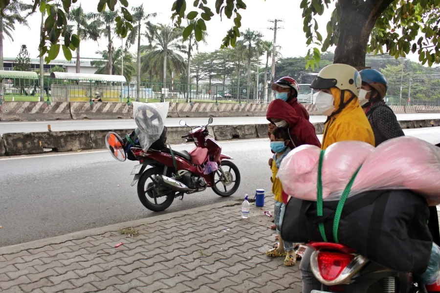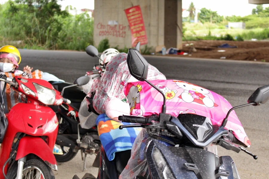 Rời TP.HCM, Đồng Nai, Bình Dương, nhiều người không ngại cồng kềnh chở cả quạt máy, gấu bông, mền gối… về quê bằng xe máy sau nhiều tháng dài ai ở đâu ở yên đó phòng chống dịch.