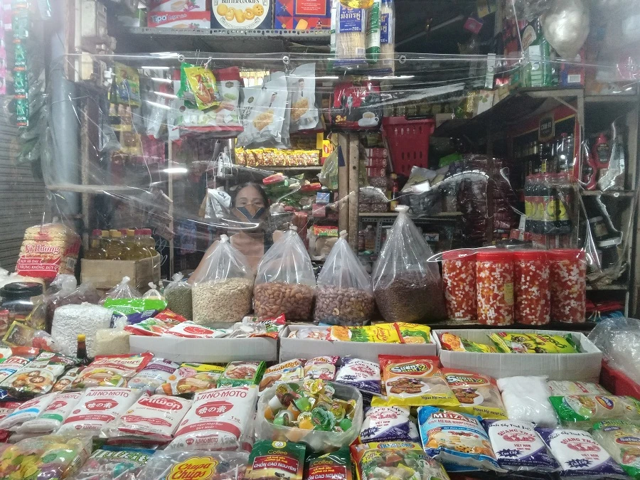 Tuy vắng khách nhưng nhiều mặt hàng như dầu ăn, đường, bột mì, bánh kẹo...tăng giá mạnh. Thậm chí, một hãng nước mắm tăng 10.000 đồng/chai loại 650ml. Do sức mua thấp nên các tiểu thương chưa dám nhập hàng mới về.