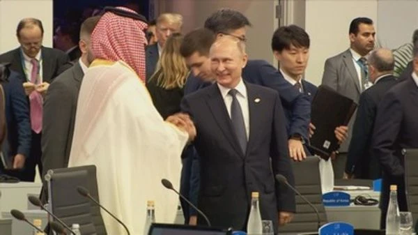 Tổng thống Putin và thái tử Mohammed tươi cười chào nhau tại buổi khai mạc hội nghị thượng đỉnh G20 ở Argentina hôm 30-11. Khi bước vào phòng họp và nhìn thấy thái tử Mohammed, thay vì đưa tay ra bắt như các nhà lãnh đạo khác, ông Putin đã giơ cánh tay nắm chặt tay thái tử Saudi Arabia trên cao. AFP lúc đó nhận định màn chào hỏi này của hai nhà lãnh đạo giống như hai người bạn lâu ngày không gặp nhau.