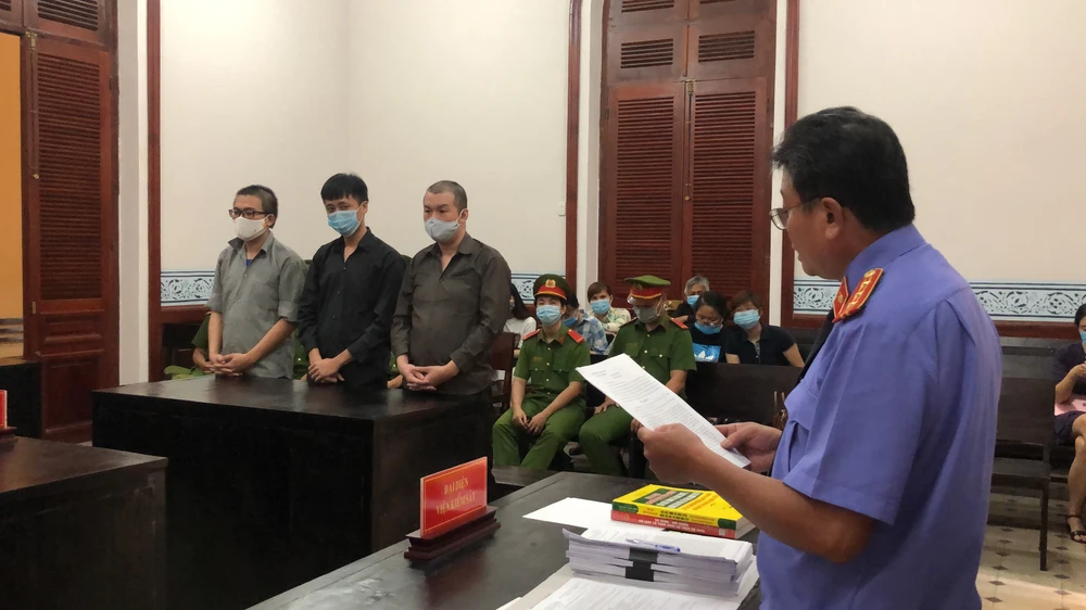 Ba bị cáo đang nghe toà tuyên án. Ảnh: H.Y