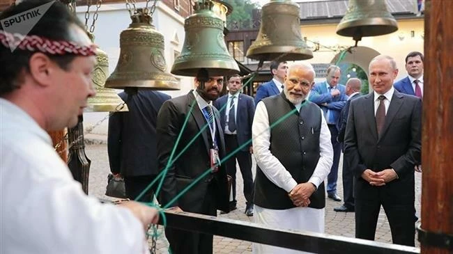 Tổng thống Nga Vladimir Putin (ngoài cùng bên phải) và Thủ tướng Ấn Độ Narendra Modi tại một sự kiện văn hóa ở Ấn Độ năm 2018. Ảnh: PRESS TV
