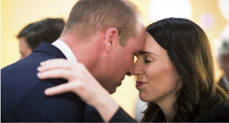 Hoàng tử William thực hiện nghi thức chào hỏi truyền thống Maori với Thủ tướng New Zealand Jacinda Ardern. Ảnh: BBC
