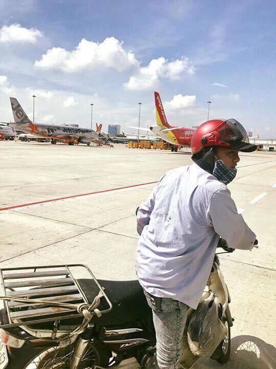 Anh Nguyễn Văn Đ. (nhân viên một cơ sở ở quận 12) lạc đường đi nhầm vào khu vực sân đậu máy bay. Ảnh: HT