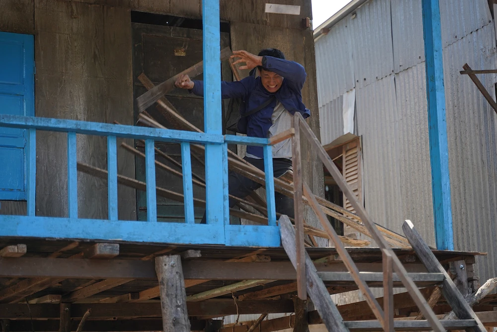 Hậu trường bối cảnh hỗn chiến làm sập dãy nhà sàn trong làng Chăm của phim Lật mặt: 48H. Clip: Đoàn làm phim cung cấp