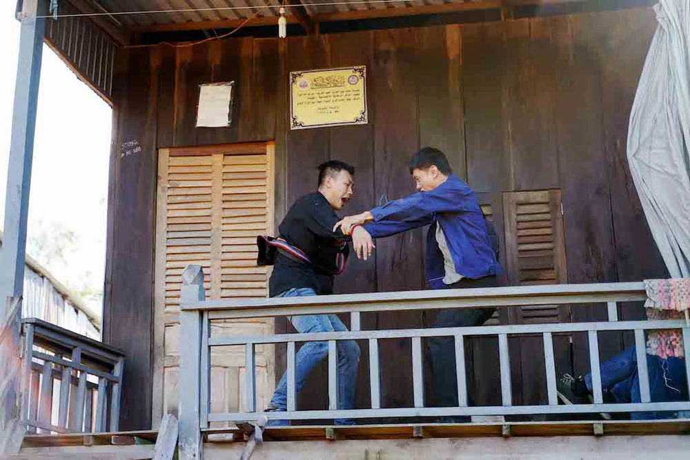 Những cảnh hành động trên nhà sàn. Ảnh: Đoàn làm phim cung cấp