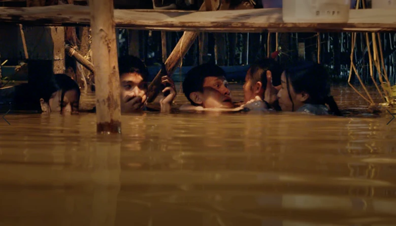 Ngay từ đầu teaser, gia đình Võ Thành Tâm và Ốc Thanh Vân đã bồng bế nhau để chạy trốn… Ảnh: Phát hành phim cung cấp