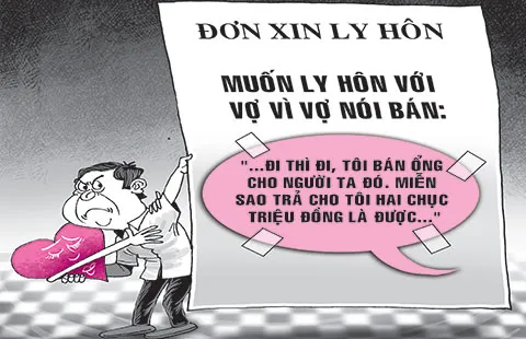 Bà B. thì không đồng ý ly hôn, khai rằng giữa ông bà không hề có mâu thuẫn gì lớn. Gần đây, ông Th. đi theo người đàn bà khác lên sống ở tận TP Đà Lạt (Lâm Đồng). Mấy chị bạn trong xóm hay trêu chọc bà rằng ông Th. đã bỏ bà đi theo người ta rồi. Bà bực nên mới trả lời: “Đi thì đi, tôi bán ổng cho người ta đó. Miễn sao trả cho tôi hai chục triệu đồng là được”.