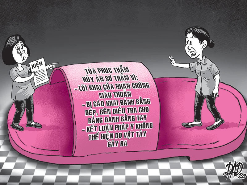 Cáo trạng có đề cập đến việc bị cáo sử dụng dép đánh bị hại nhưng viện dẫn kết luận giám định pháp y lại không thể hiện do vật tày gây ra. Bản án sơ thẩm ghi nhận thương tích của chị Phượng là 18% nhưng không ghi nhận do vật gì tác động gây ra thương tích này.