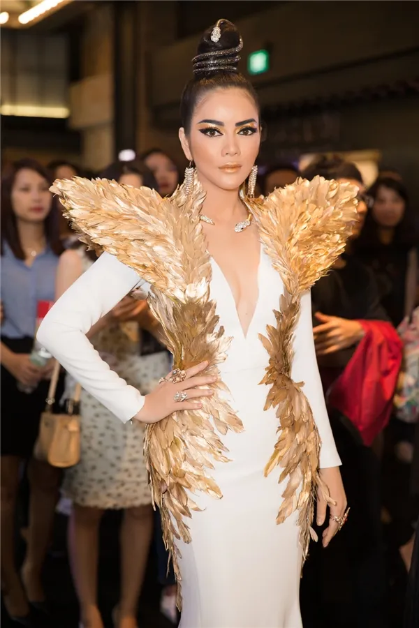 Bộ trang này được lấy ý tưởng từ Nữ hoàng Ai Cập được NTK Lê Thanh Hòa chuẩn bị trong vòng 1 tháng.