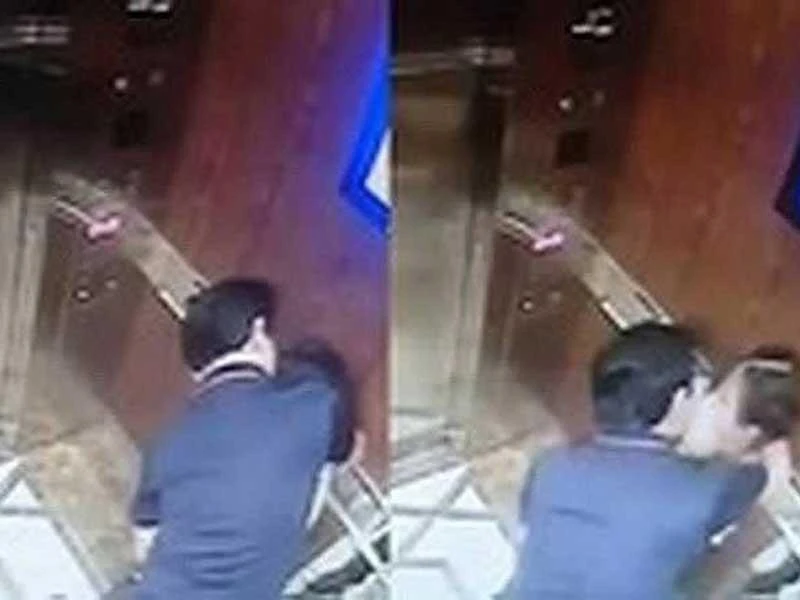 Hình ảnh ông Nguyễn Hữu Linh trong thang máy được camera ghi lại. (Ảnh cắt từ clip)