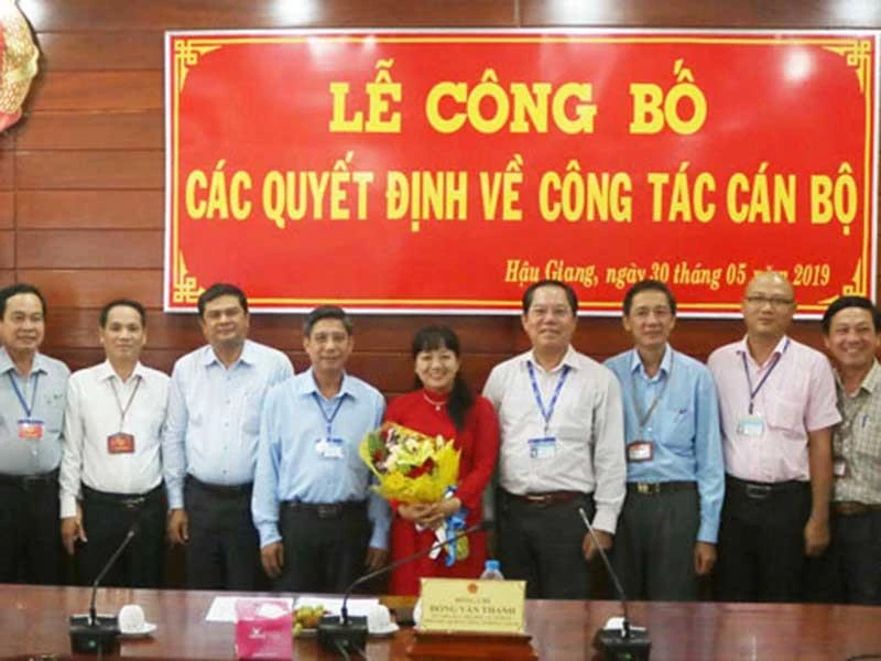 Các đại biểu trong buổi công bố quyết định chiều 30-5. Ảnh: haugiang.gov.vn