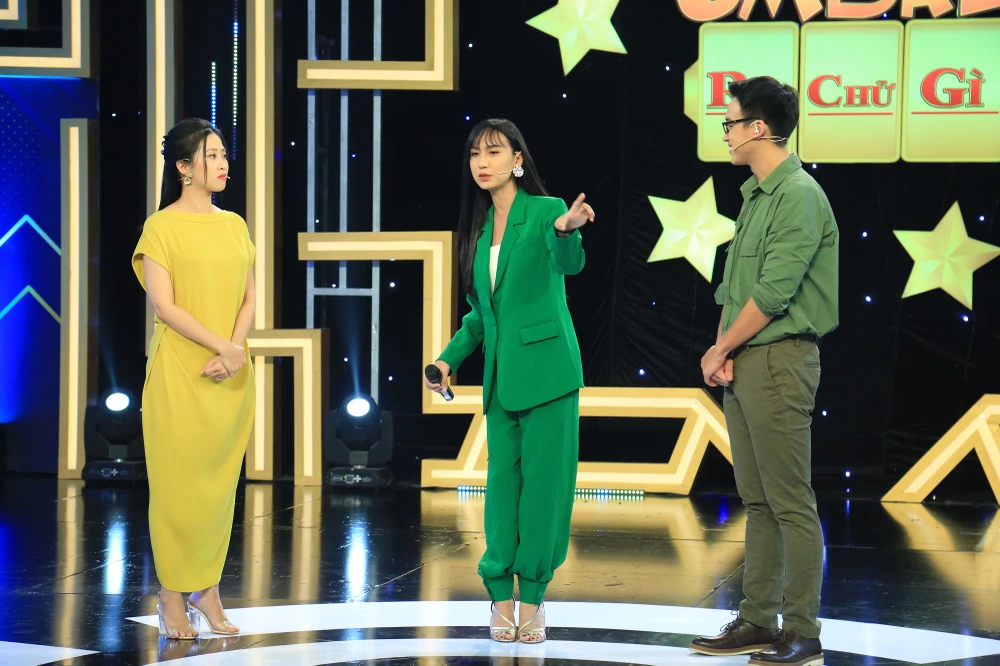 Đáp lời, Diệp Bảo Ngọc tỏ ra tự tin: “Màu của chiến thắng”. Vốn bản tính thích đùa cợt mọi người, Hồ Việt Trung bảo: “Dừng lại đó cưng!”, khiến các nghệ sĩ cười nghiêng ngả.