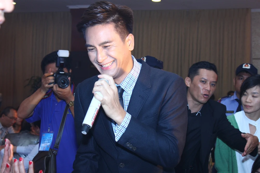 Mã Quốc Minh thì vừa hát vừa đi bắt tay nhiều khách mời khiến không khí buổi tiệc vui vẻ, thân mật.