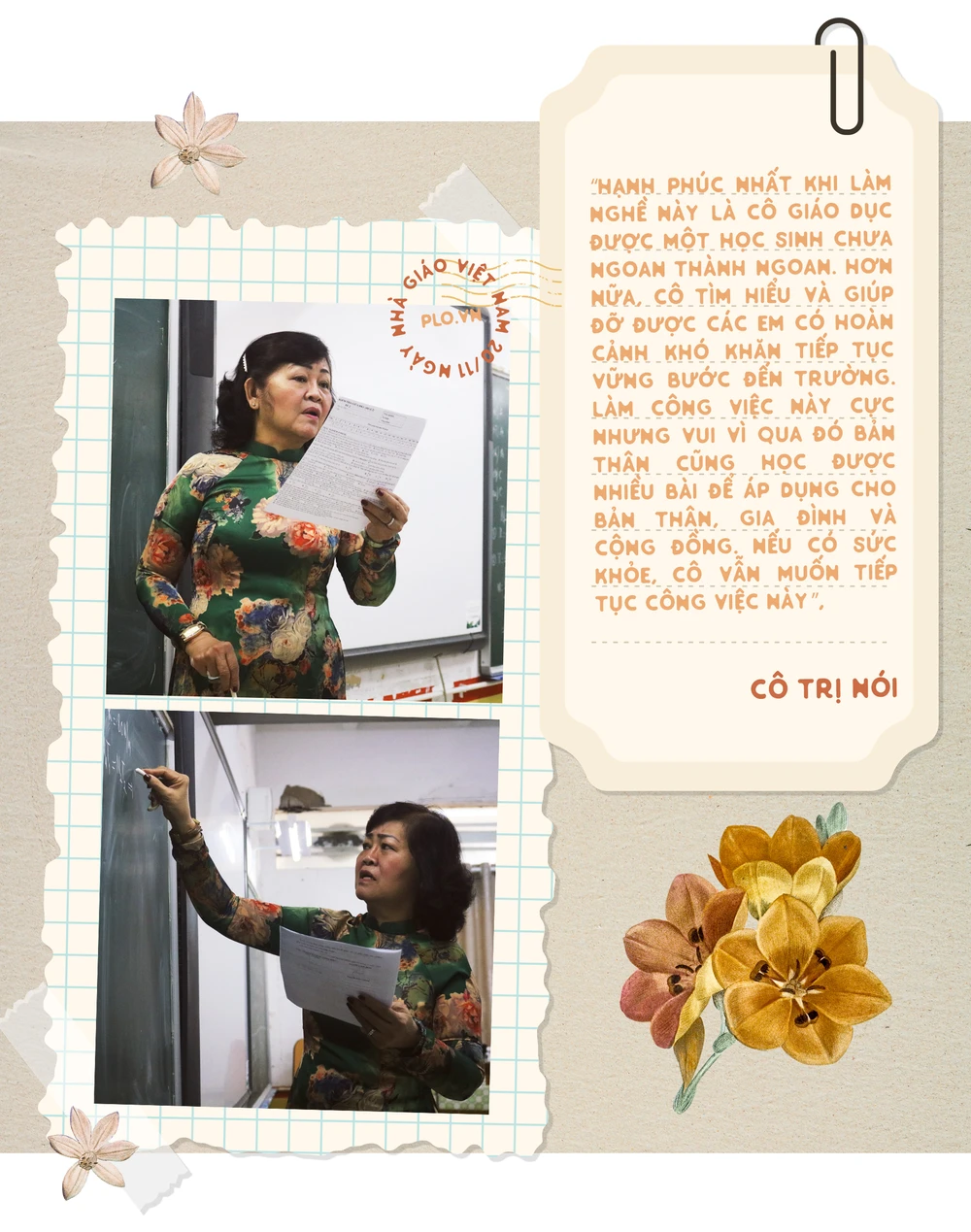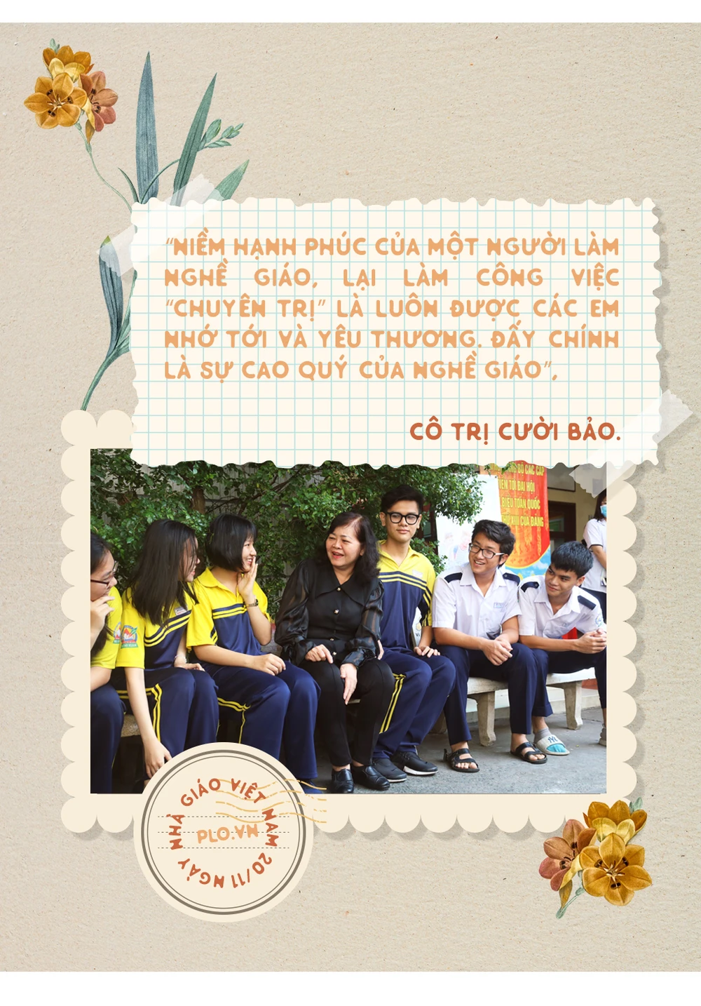 “Niềm hạnh phúc của một người làm nghề giáo, lại làm công việc “chuyên trị” là luôn được các em nhớ tới và yêu thương. Đấy chính là sự cao quý của nghề giáo”, cô Trị cười bảo.