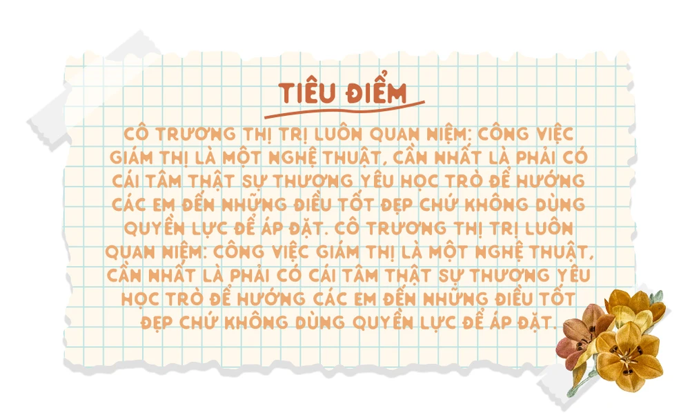 Nhìn nhận về công việc của mình, cô Trị cho hay, để giáo dục học sinh hiệu quả, bản thân phải có tâm, phải yêu thương và lắng nghe học sinh.