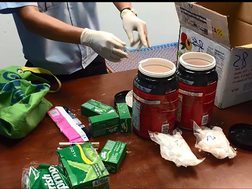 Trước đó, đơn vị này phối hợp với nhiều lực lượng kiểm tra, khám xét lô hàng quà biếu của nghi phạm đã phát hiện 400 gram ma tuý đá Methamphetamineđược cất giấu tinh vi trong dầu gội, quần áo, bánh kẹo và hộp bột dinh dưỡng.