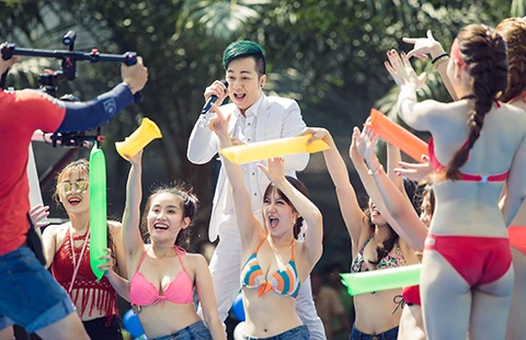 Ca sĩ Quách Tuấn Du trong video Bolero Mix - Quách Tuấn Du Pool Party phát trên YouTube ngày 6-5 vừa qua. Ảnh: QT