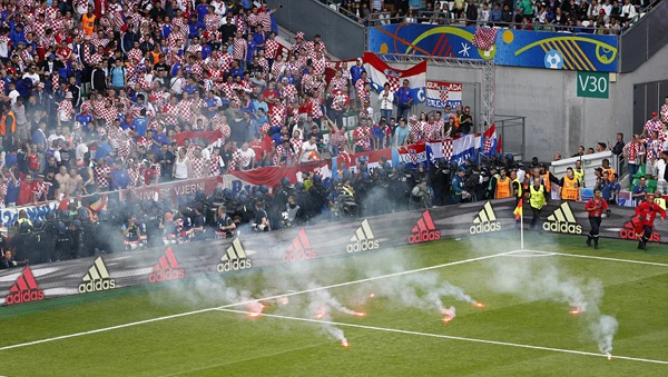Khi chiến thắng đang đến rất gần thì các CĐV Croatia lại làm cho cục diện trận đấu trở nên rối ren và phức tạp. Một CĐV Croatia ném pháo sáng xuống sân, trúng vào mặt cầu thủ đội nhà. Hành động trên của người hâm mộ Croatia không làm cho trận đấu tạm hoãn mà các cầu thủ Croatia để cho CH Czech gỡ hoà 2-2 ở phút bù giờ.