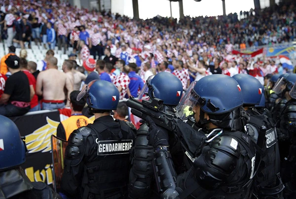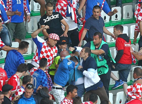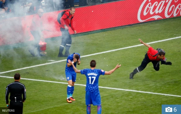 Ngay lúc đó, trên khán đài, một nhân viên an ninh bị các CĐV của Croatia hành hung