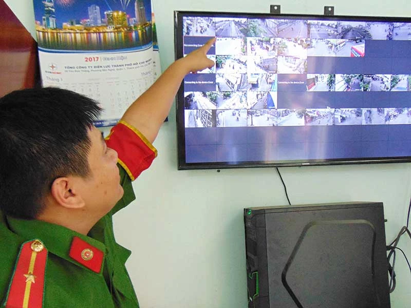 Công an phường Đông Hưng Thuận, quận 12, TP.HCM luôn quan sát tình trạng đổ rác bừa bãi qua màn hình camera để xử lý ngay. Ảnh: TRẦN NGỌC