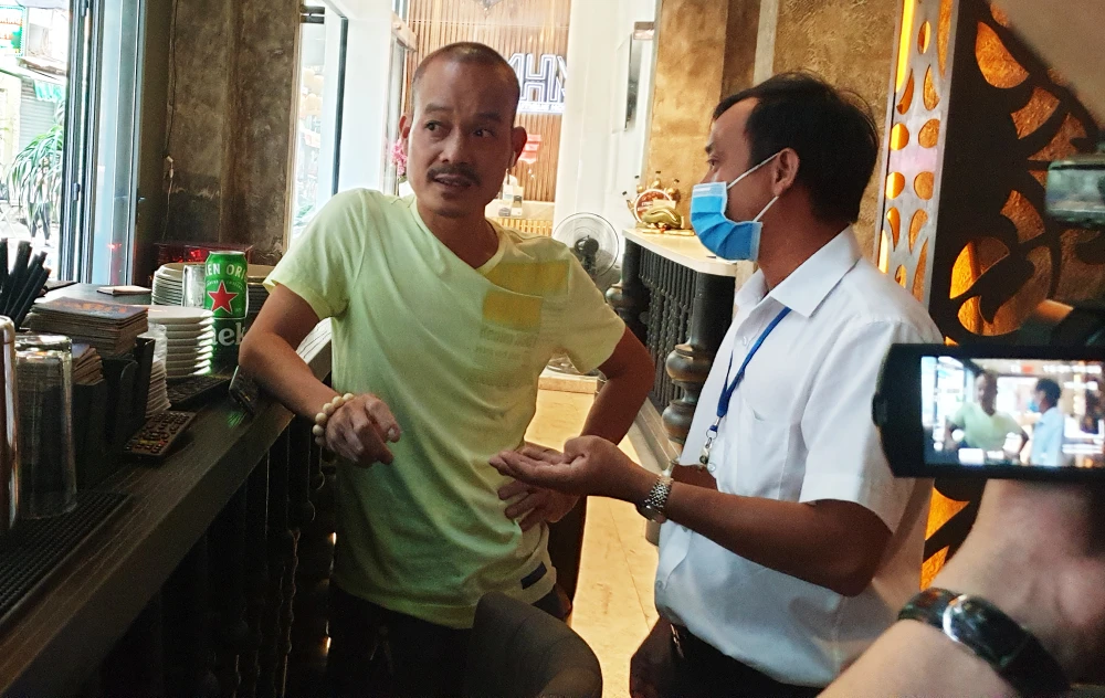 Một người đàn ông sau khi nhận được văn bản thì đuổi theo cán bộ UBND phường Phạm Ngũ Lão đặt câu hỏi: "Tạm ngừng kinh doanh cho đến thời điểm nào?"