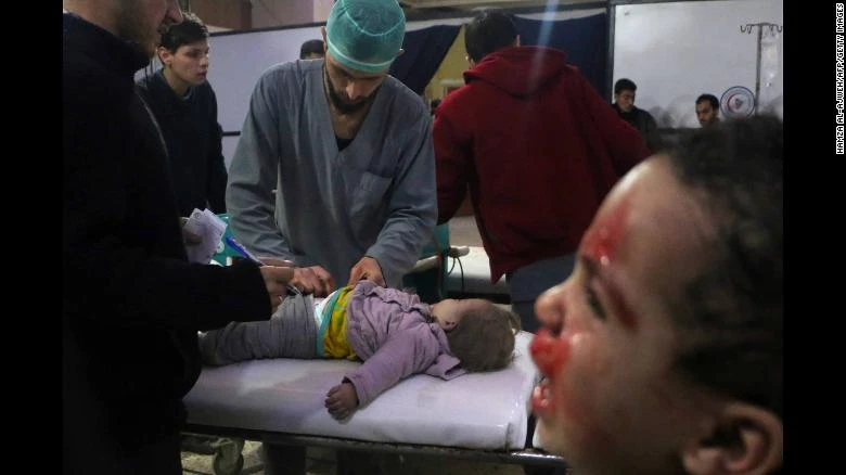 Các bệnh viện, cơ sở y tế ở Đông Ghouta không đủ điều kiện để tiếp nhận người bị thương do trận không kích ác liệt tiếp diễn. Ảnh: CNN