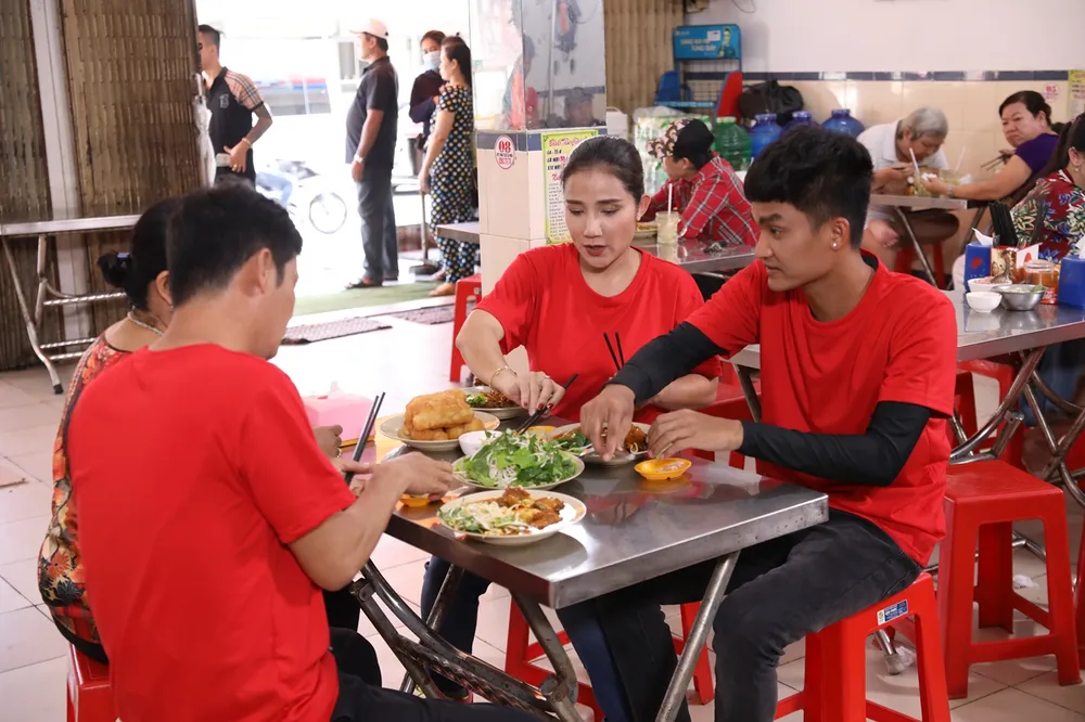 Cả ba nghệ sĩ rất hào hứng và dành nhiều lời khen cho món ăn này. Theo lời kể của chủ quán, để có được hương vị hấp dẫn như ngày hôm nay, hai vợ chồng chị đã kiên nhẫn, tỉ mỉ lắng nghe góp ý của khách hàng và không ngại thử các công thức gia giảm nêm nếm mới cho món ăn.