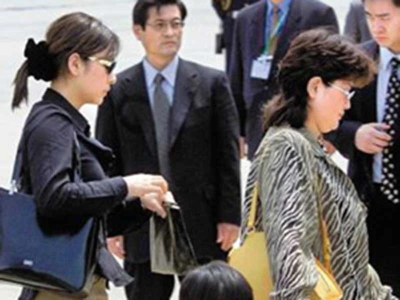 Từ phải qua, người vợ đầu của ông Kim Jong-nam cùng con trai cả và thư ký của ông rời sân bay Narita ở Nhật Bản ngày 4-5-2001. Ảnh: MAINICHI