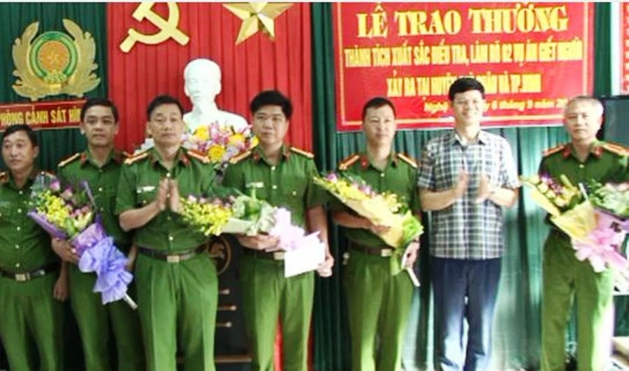 Sáng 6-9, Phó Chủ tịch UBND tỉnh Nghệ An Lê Xuân Đại và Đại tá Nguyễn Mạnh Hùng, Phó Giám đốc Công an tỉnh Nghệ An, đã tặng hoa, biểu dương và "thưởng nóng" cho các đơn vị đã tham gia phá thành công vụ án giết người trên.