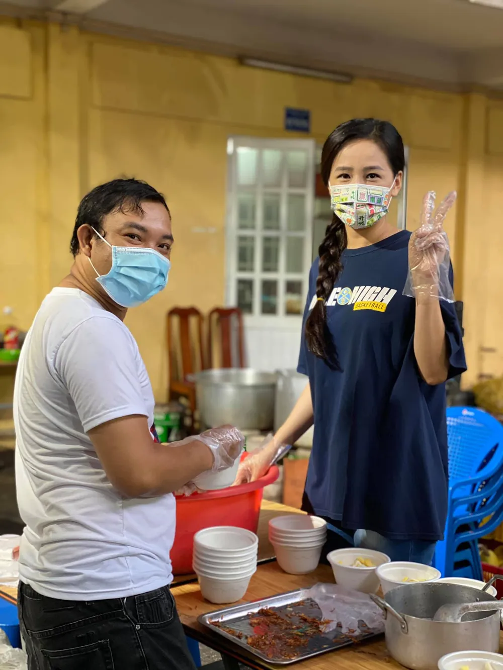 Mai Phương Thúy và các Tình nguyện viên dậy từ sáng sớm để chuẩn bị.