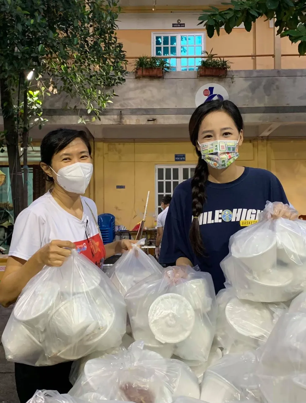 Hình ảnh Mai Phương Thúy giản dị với áo phông, tóc thắt bím gọn gàng, cùng anh em nghệ sĩ chuẩn bị những suất ăn cho các y bác sĩ nơi tuyến đầu chống dịch khiến người hâm mộ cảm thấy ấm lòng.