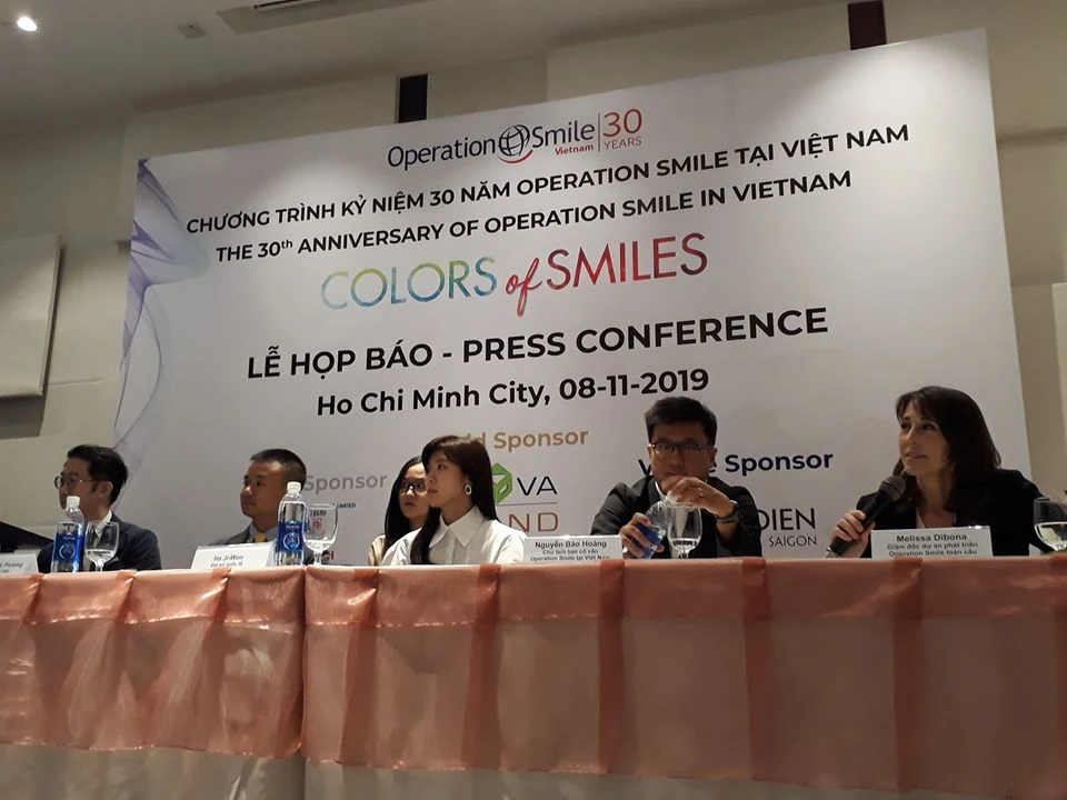 Đại diện Operation Smile trong ngoài nước và Hajiwon tại họp báo. Ảnh: Hòa Bình