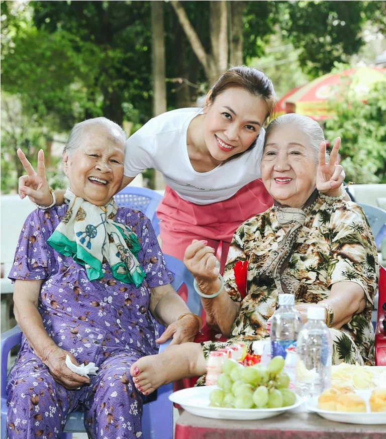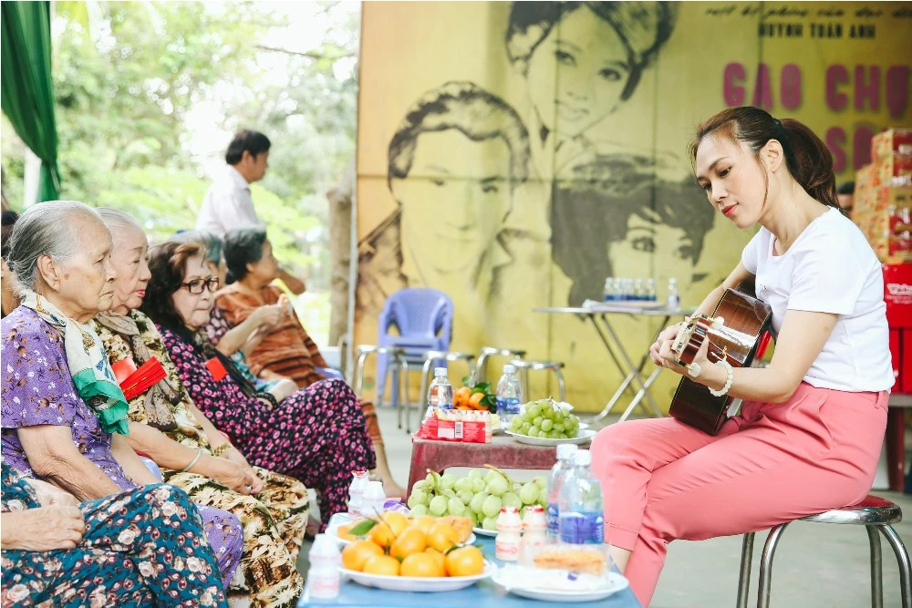 Xuyên suốt buổi giao lưu, cô còn tranh thủ thăm hỏi tình hình sức khỏe của từng nghệ sĩ. Nhiều người cho biết, họ xem cô như con cái trong gia đình và thường nhắc đến cô bởi nhiều năm qua, bất chấp trời mưa gió, cô vẫn dành thời gian đến thăm họ đều đặn vào mỗi dịp Tết.