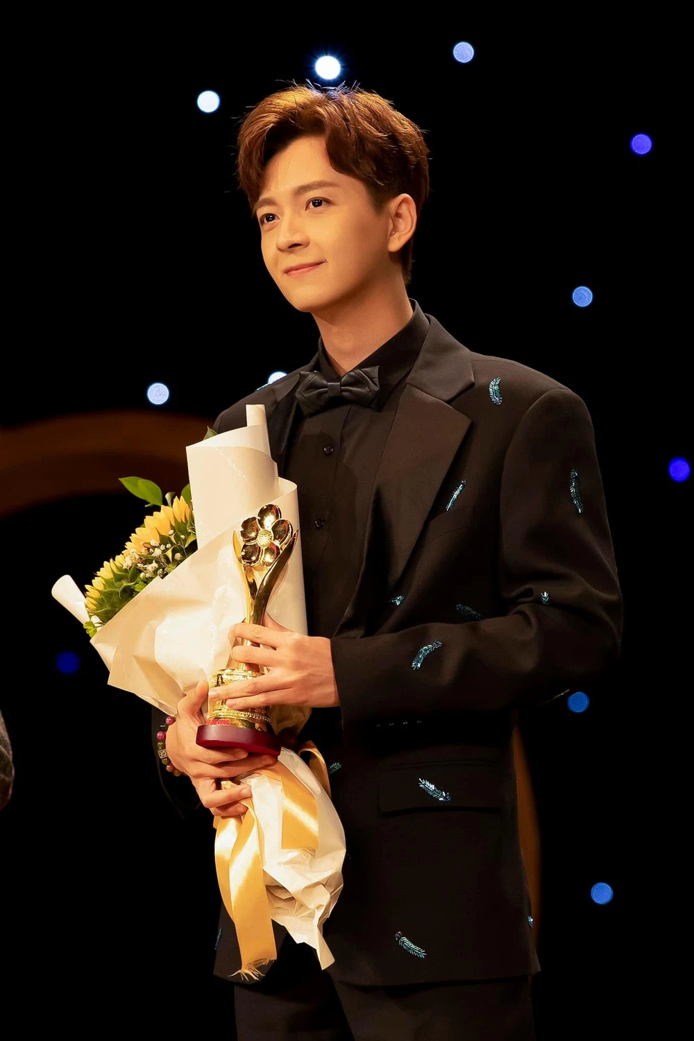 Ngô Kiến Huy lập "cú đúp" khi chiến thắng hai hạng mục MC và Nam diễn viên điện ảnh - truyền hình được yêu thích nhất tại Mai Vàng 2021. Ảnh: FBNV.