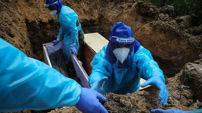 Nhân viên nghĩa trang mặc đồ bảo hộ chôn cất các nạn nhân COVID-19 tại một nghĩa trang ở Malaysia vào ngày 24-7. Ảnh: REUTERS