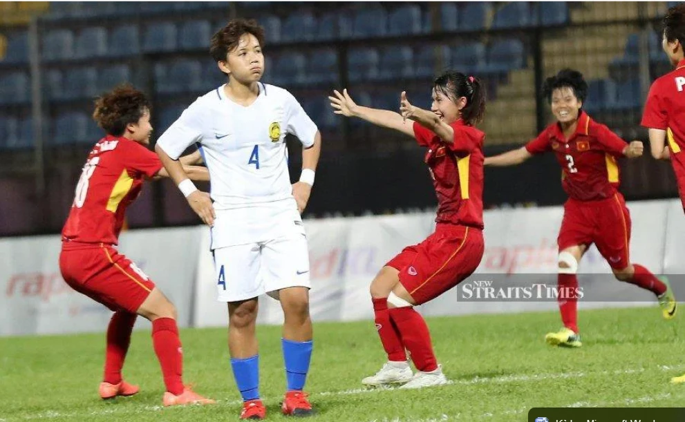 Bóng đá nữ Malaysia một thời....chơi được nhưng nay cảm thấy không có khả năng tranh chấp huy chương nên rút. Ảnh: NST