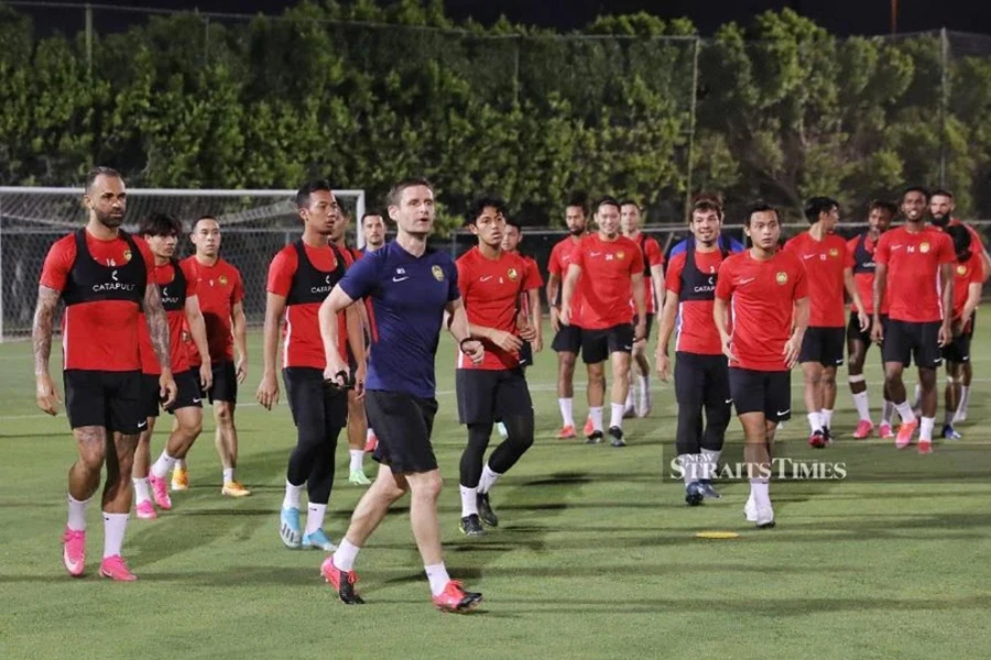 Malaysia tích cực tập luyện chuẩn bị đối đầu với Việt Nam. ẢNH: NEW STRAITS TIMES.