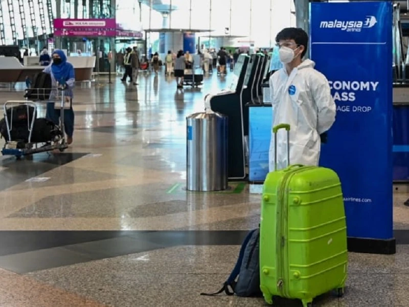 Các du khách ở sân bay quốc tế Kuala Lumpur (Malaysia) mặc đồ bảo hộ phòng dịch. Ảnh: AFP