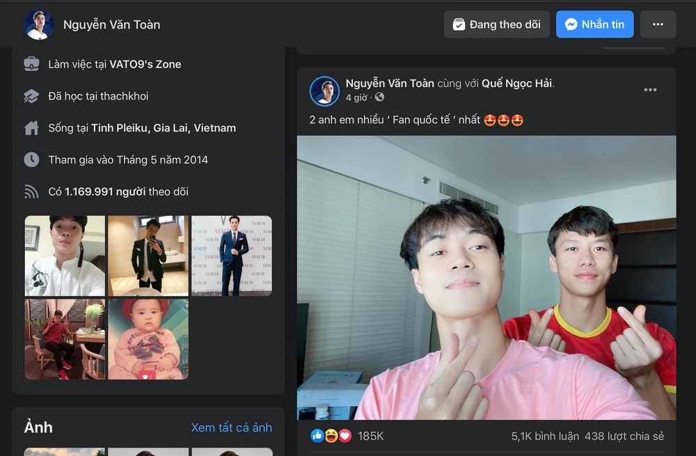Nguyễn Văn Toàn và Quế Ngọc Hải cùng chụp ảnh "khoe": Hai anh em nhiều fan quốc tế nhất trên trang cá nhân. ẢNH: CMH