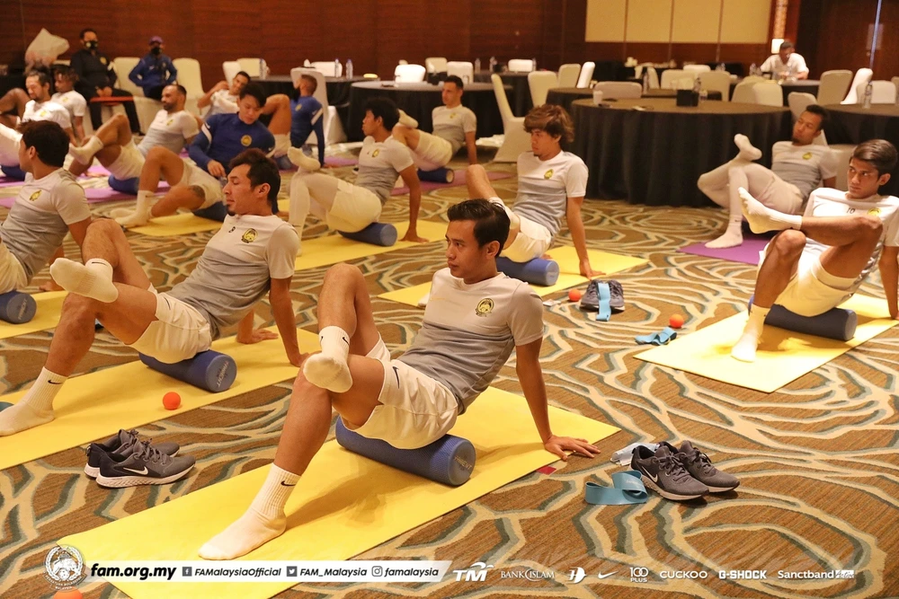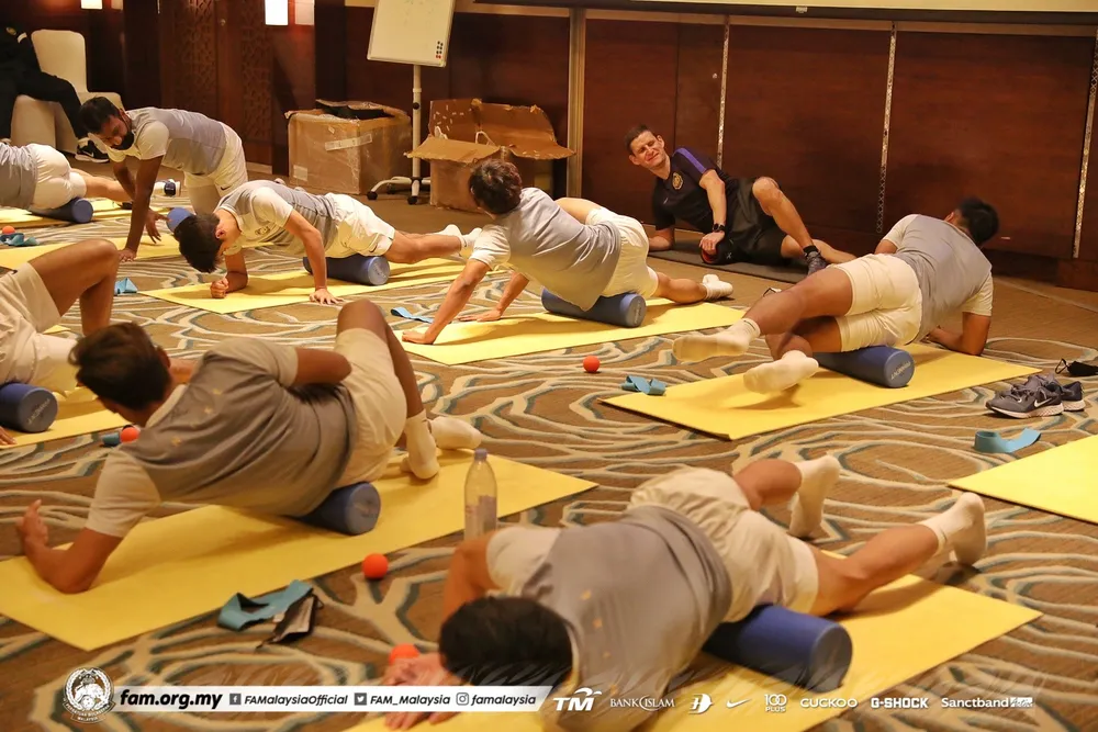 Dưới đây là loạt hình ảnh của LĐBĐ Malaysia (FAM) ghi lại toàn đội Malaysia trong buổi tập lạ ngay tại khách sạn.