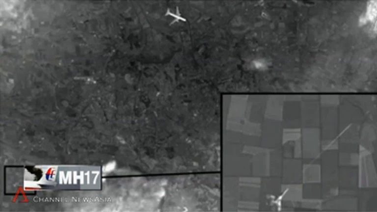 Hình ảnh vệ tinh vụ MH17 được các phương tiện truyền thông Nga đưa ra gần đây (Ảnh: Channel 1)