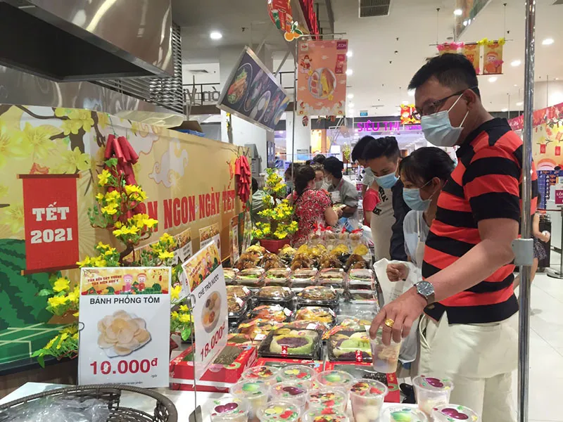 Tại các cửa hàng, hệ thống bán lẻ trên địa bàn TP.HCM không khí tết đã ngập tràn, nhộn nhịp khách mua sắm. Đáng chú ý, hàng trăm món ăn ngon ba miền, mâm trái cây ngũ quả, mâm cỗ cúng gia tiên… đã được các nhà kinh doanh dồn dập tung ra thị trường, giúp cho bà nội trợ có thêm nhiều lựa chọn.