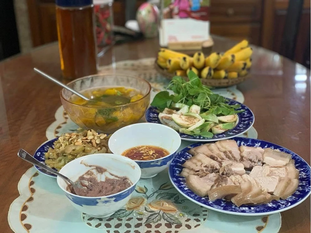Mắm ruốc ăn kèm thịt luộc.