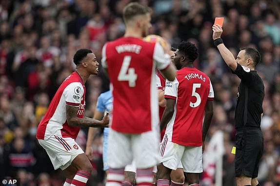Và Pháo thủ phải trả giá ngay sau đó, phút 59, Magalhaes nhận thẻ đỏ sau pha phạm lỗi từ giữa sân với Sterling. Arsenal phải chơi với 10 người trong hơn 30 phút còn lại của trận đấu.